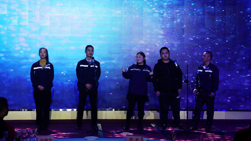 團(tuán)拜會(huì)在開場(chǎng)舞《我和我的祖國(guó)》的激情帶動(dòng)下正式拉開帷幕。首先,河南永和建設(shè)集團(tuán)黨支部書記、董事長(zhǎng)孔德穩(wěn)向大家致以新春祝福。對(duì)2019年工作所取得的成績(jī)充分肯定的同時(shí),也對(duì)2020年集團(tuán)公司的發(fā)展作出了規(guī)劃部署,與全體員工共同展望美好愿景。