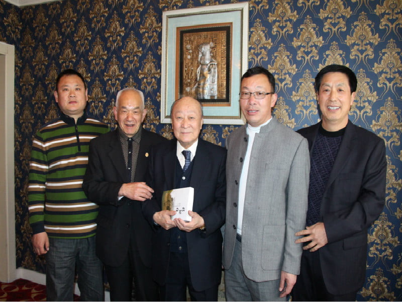 92歲高齡的世界孔子聯(lián)誼總會會長孔德墉(左三)與出席曲阜祭孔大會的信陽籍代表合影留念