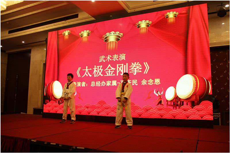 年會(huì)中,員工及家屬們積極踴躍展示才藝,節(jié)目繽紛多彩,令人眼花繚亂,應(yīng)接不暇,既有萌萌的兒童舞,又有百靈鳥般的優(yōu)美歌聲,還有少林小武者的中華武術(shù)表演,更有大師級(jí)的現(xiàn)場(chǎng)潑墨,大家紛紛上臺(tái),一展才華·······精彩的節(jié)目獲得了觀眾的陣陣掌聲和喝彩。