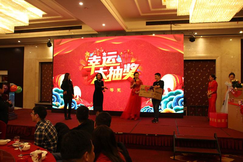晚會(huì)期間,現(xiàn)場(chǎng)氣氛嗨到頂點(diǎn)的就是幸運(yùn)抽獎(jiǎng),抽到獎(jiǎng)品的幸運(yùn)者臉上笑顏如花,給晚會(huì)增添了別樣的風(fēng)采。