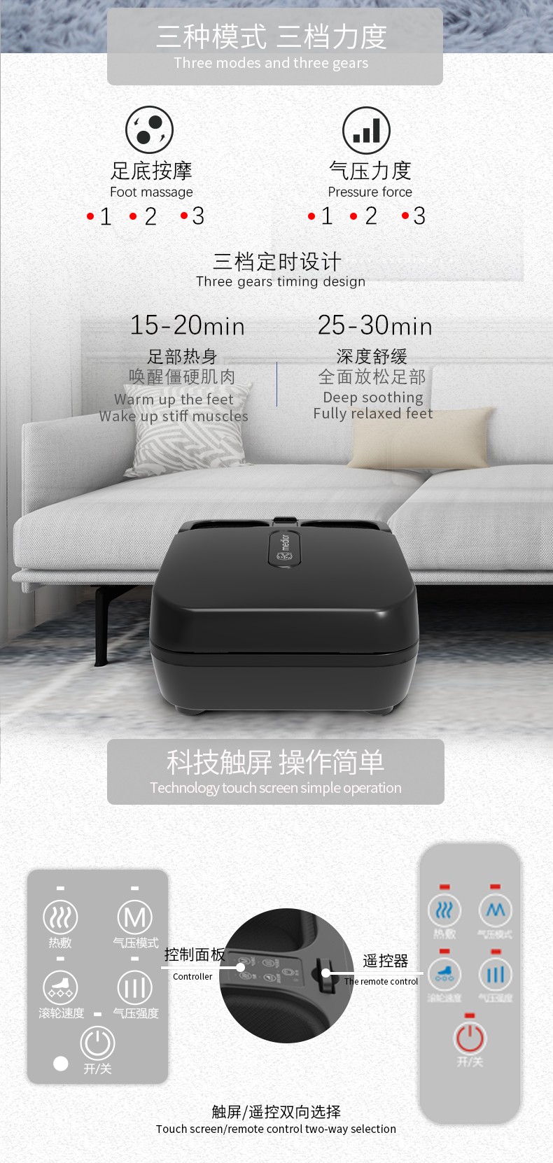 5.滾壓、刮痧、氣囊擠壓、3擋力度、3種模式