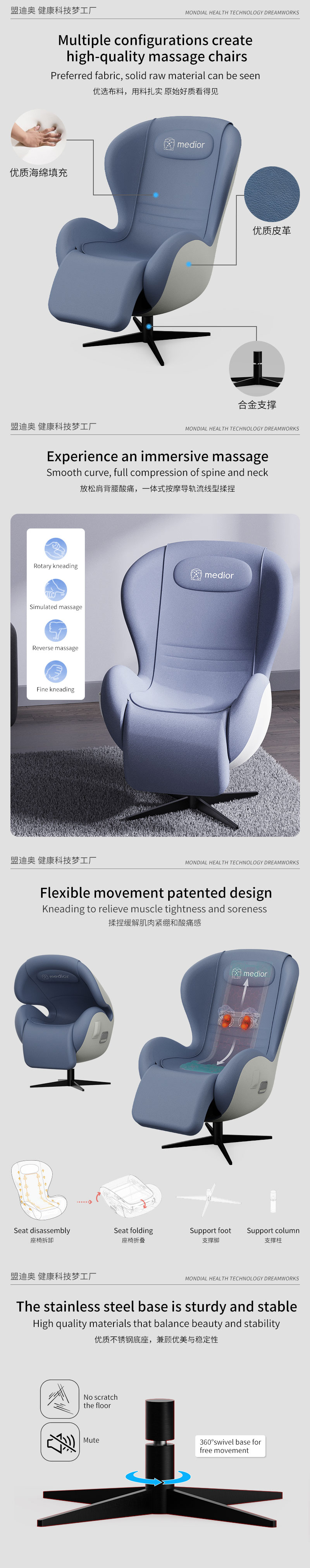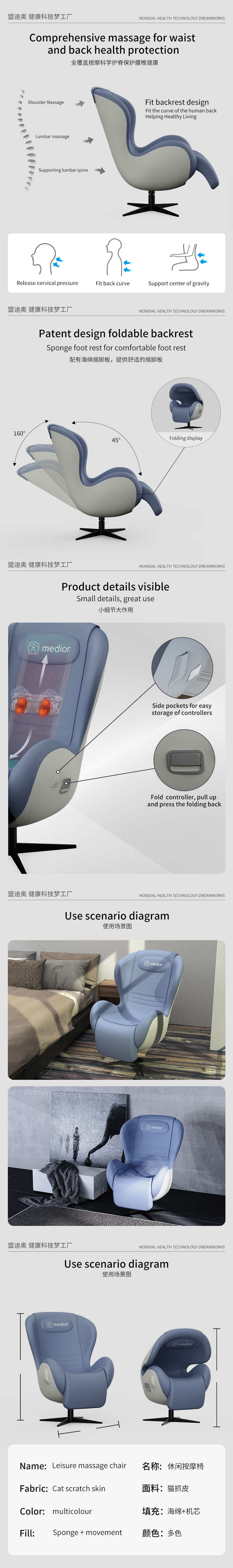 柔性休閑按摩椅 可坐可躺90-160°角度可調(diào)節(jié)仿真人揉捏按摩手法舒緩腰背 多功能遙控器一鍵啟動 按摩行程95cm,從肩膀到小腿360°旋轉(zhuǎn)可拆卸披風(fēng) 方便清洗 獨家專利柔性機(jī)芯 超薄可折疊 包裝體積小