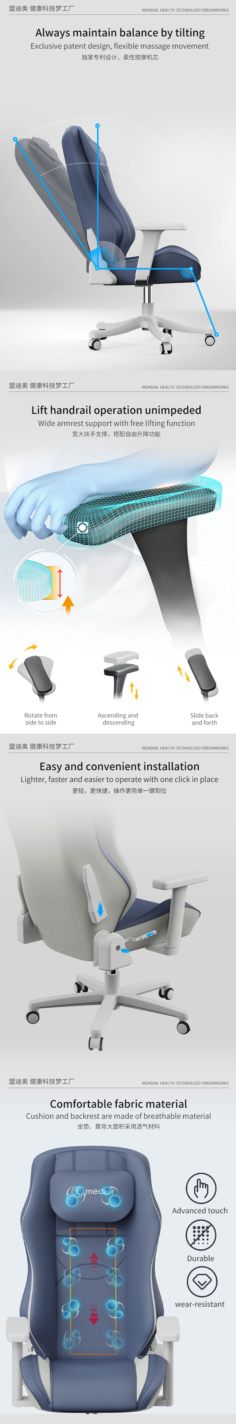 頸部揉捏按摩功能并能順時(shí)針和逆時(shí)針兩個(gè)方向旋轉(zhuǎn)頸部上下高度可調(diào),以適應(yīng)不同使用者的身高。