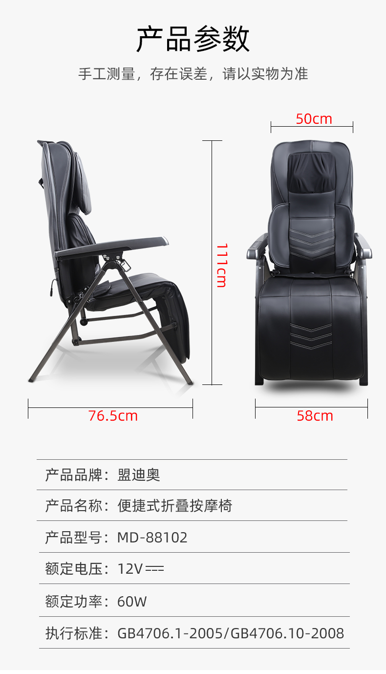 折疊式按摩椅1.頸部:創(chuàng)新壓肩按摩,正反轉(zhuǎn)揉捏,上下可調(diào)節(jié)高矮適應(yīng)不同人。